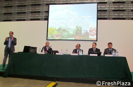 Durante la prima parte dell'incontro, Marco Casalini, presidente di Terremerse, Mirko Zanotti e Ilenio Bastoni (vedi articolo correlato), rispettivamente presidente e direttore commerciale di Apofruit, hanno riassunto al pubblico presente in sala i numeri salienti delle rispettive cooperative.