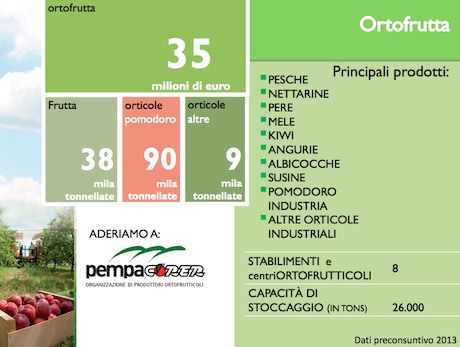 Il Gruppo Apofruit nel 2013 ha lavorato 235.000 ton di ortofrutta (88% dalla cooperativa), con un valore alla produzione di 258,7 milioni di euro (83%)