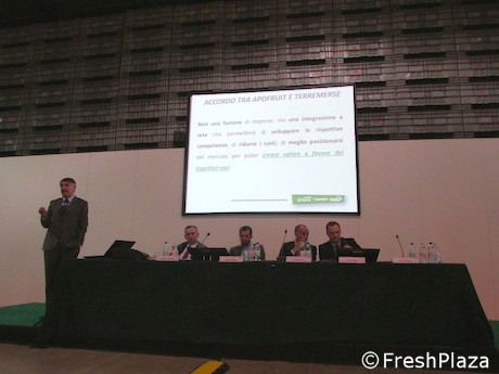 "L'accordo strategico tra Apofruit e Terremerse non rappresenta una fusione di imprese, ma una integrazione a rete che permetterà di sviluppare le rispettive competenze, di ridurre i costi, di posizionarsi meglio nel mercato per poter creare valore a favore dei rispettivi soci. In modo specifico, l'intesa mette a valore i settori dell'ortofrutta e delle agroforniture". Lo ha detto ieri a Faenza Renzo Piraccini, direttore generale di Apofruit, durante l'incontro "Nuove opportunità per l'ortofrutta del territorio" organizzato dalle due cooperative per presentare le strategie e i nuovi servizi di logistica e di lavorazione industriale rivolte all'imprenditoria agricola della Romagna nell'ambito dell'accordo stipulato qualche mese fa (cfr. FreshPlaza del 02/12/2013).