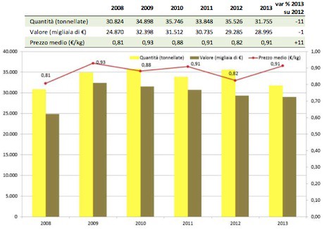 Le importazioni sono in sostanza stabili, con variazioni dalle 30 alle 35.000 tonnellate annue di prodotto destagionalizzato, i volumi sono dunque di poco superiori alle nostre esportazioni.