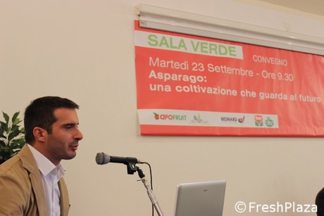 Tomas Bosi del CSO. Al convegno dedicato all'asparago ha presentato i dati italiani e mondiali di questa coltura.
