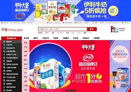 L'home page di TMall, uno dei maggiori supermercati virtuali della Cina.