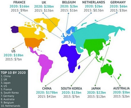 Ebbene, entro il 2020 raggiungeranno quota 178 miliardi di dollari, a dispetto di Regno Unito e Giappone che raggiungeranno rispettivamente quota 28 e 22 miliardi di dollari.
