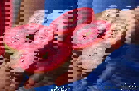 Le tipologie a polpa rossa possono presentarsi di un rosso intenso (foto sopra) o leggermente rosate (foto sotto).