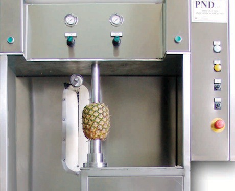 Realizzato secondo la Direttiva Macchine 2006/42 e successive modifiche, il Mod. PL1 D permette di regolare lo spessore della buccia e il diametro per la detorsolatura dell'ananas. Tramite inverter, si può anche variare la velocità di produzione e rotazione del frutto.