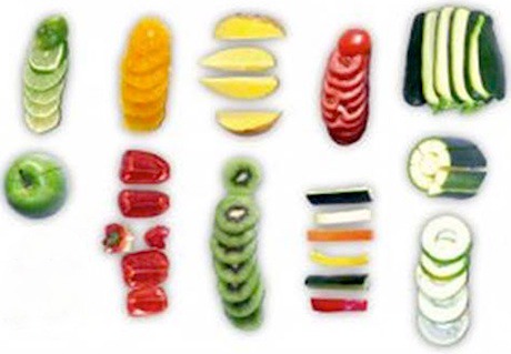 "La definiamo universale perché permette il taglio e/o la detorsolatura di mele, pere, arance, kiwi, ananas baby, meloni baby, pomodori, melanzane, zucchine, cetrioli, funghi, patate e così di seguito. Il tutto in diverse forme - fette, spicchi, stick, rombi - e dimensioni, grazie a un veloce cambio di fustelle e tampone".