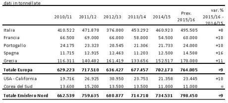 All'estero, limitandoci all'Emisfero Nord, cosa succede? Tutti i principali paesi produttori europei sono in crescita; idem per gli Stati Uniti (leggasi California). Ma, su tutti, c'è un paese che – come è emerso durante il convegno – è da tenere sott'occhio: la Grecia.
