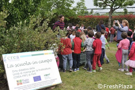 Bambini al CREA-FRF, Istituto sperimentale per la frutticoltura di Forlì nell'ambito del progetto frutta nelle scuole.
