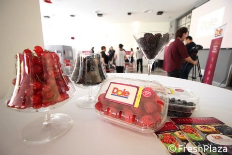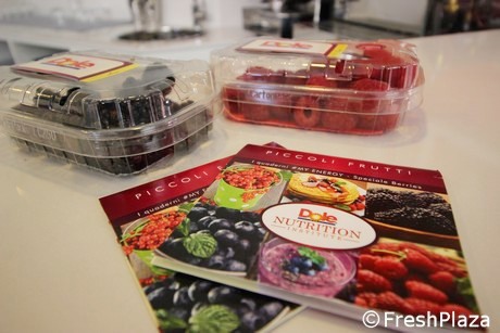 Confezioni di bacche targate Dole, mentre in primo piano si notano i Quaderni My Energy Speciale Berries.