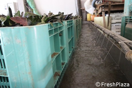 La fase di imbianchimento dei radicchi tardivi di Treviso. Viene usata solo acqua del Sile.