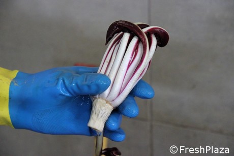 La radice del radicchio viene capitozzata.