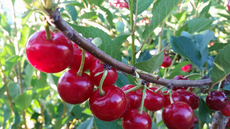 Particolare della fruttificazione del nuovo genotipo di amarene sperimentato negli impianti fitti e superfitti.