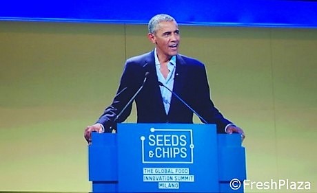 Barack Obama, ospite d'onore al Seeds and Chips -The Global Food Innovation Summit dove martedì 9 maggio ha tenuto il suo discorso sulla sicurezza alimentare e i suoi effetti economici, politici e sociali sul sistema globale.