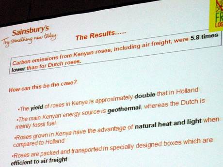 "Il trasporto è solo una causa tra tante altre nell'emissione di gas serra - spiega Jan Sahota, capo della sezione di responsabilità sociale presso la catena britannica Sainsbury's - In Kenya si usa generalmente meno carburante che in Olanda, anche perché in Kenya ci sono più ore di luce solare. Perciò sarebbe meglio per l'ambiente coltivare rose in Kenya e trasportarle in Inghilterra via aerea invece che importarle dall'Olanda."