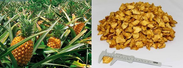 "Il processo di disidratazione avviene esclusivamente con aria calda. Il frutto viene tagliato, la buccia viene separata dalla polpa che viene introdotta nei tunnel di aria calda per ridurre la quantità di acqua, fino a ottenere un prodotto disidratato di altissima qualità".
