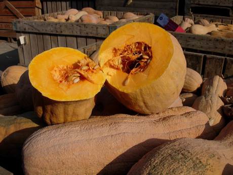 Da qualche anno i nostri agricoltori producono anche piccole quantità di zucche lunghe gialle (cosiddette “violine”), che solitamente vengono vendute a supermercati e industrie alimentari. Quest’anno abbiamo a disposizione circa 66 tonnellate di zucche da collocare al meglio per soddisfare le aspettative dei nostri soci.