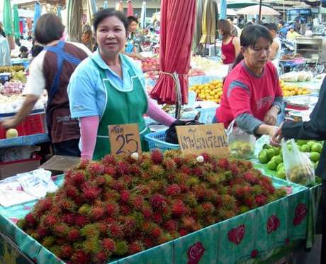 Thailandia del nord: vendita di frutta esotica