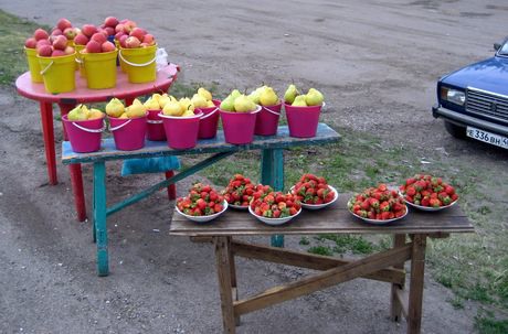 Russia centrale: vendita di frutta lungo la strada tra Voronezh e Tula