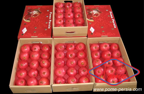 Yaghout Sorkh Pars Co. fornisce frutti di melograno di vari calibri (9, 12, 15, 18 e 22). Il peso netto di ogni cartone è di circa 5 kg, con scarti del +/-5%. Due i pallet disponibili: uno contiene 120 cartoni, l'altro ne contiene 160. Ogni container può caricare 11 pallets da 120 cartoni e 11 da 160 cartoni, pari ad un totale di 3.080 cartoni (15 tonnellate).