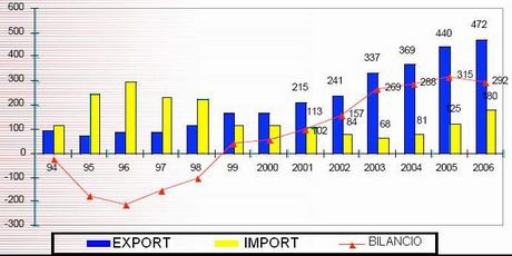 Dal 1998 al 2006, le esportazioni di frutta dal Brasile sono aumentate esponenzialmente del 170% in termini di volume (da circa 297.000 ton a oltre 802.000 ton) e del 296% in termini di valore (da circa 120 milioni di dollari a oltre 472 mln di dollari). Ciò ha permesso alla bilancia commerciale ortofrutticola brasiliana (vedi tabella qui sotto) di accrescere il proprio attivo - dopo vari anni (1994 - 1998) di bilancio passivo - fino ad arrivare ad un massimo di 315 mln di dollari di attivo nel 2005 (292 mln di dollari nel 2006).