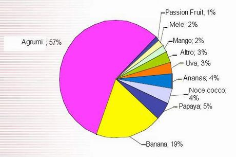 Sotto: ripartizione percentuale della produzione frutticola brasiliana nel 2006