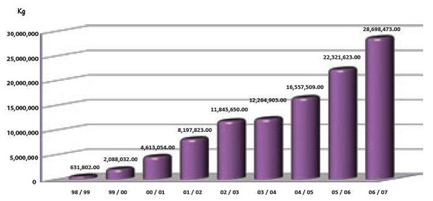 Esportazioni di uva da tavola dal Perù, a partire dal 98/99