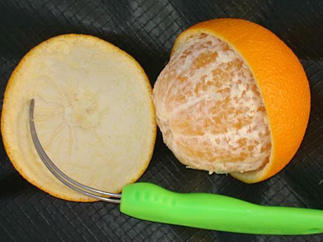 Un'azienda sudafricana ha inventato un nuovo strumento per sbucciare le arance con pochi semplici gesti, in modo netto e pulito, La buccia viene perfettamente distaccata dalla polpa, in due emisferi che possono essere successivamente utilizzati a scopo decorativo.Grazie all'invenzione di Ezi Sit-Rus, sbucciare arance, mandarini, pompelmi o altri agrumi diventa questione di un minuto, senza sporcarsi le mani. Lo strumento è utilizzabile con altrettanta facilità sia dalle persone destrorse, sia da quelle mancine.
