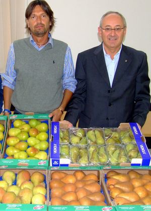 Luca Gentilini e Diego De Lucca (fotoqui accanto) mostrano alcune confezioni di pere di eccellente qualità."I mercati più esigenti - spiega Diego - ci chiedono esclusivamentequesto prodotto. La pera è un prodotto che presenta notevoli differenzenella forma e nel calibro. Qui i buyers possono trovare una risposta dialtissimo livello, specialmente se interessati a creare, come alcuninostri clienti inglesi, linee di top quality".