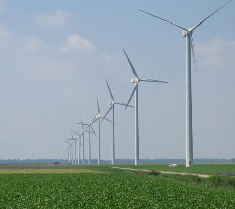 Sotto: parco eolico nelle campagne olandesi (foto FreshPlaza)