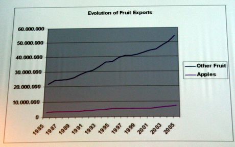 In generale, nel corso degli ultimi venti anni, soprattutto grazie al tasso di crescita della frutta esotica, le esportazioni di frutta hanno visto un trend ascendente ben più veloce rispetto al comparto mele.