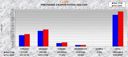 I piccoli agrumi (quali clementine e mandarini) dovrebbero conoscere il picco delle esportazioni in dicembre, con un volume atteso di 645.308 tonnellate, contro le 583.506 del 2007.
