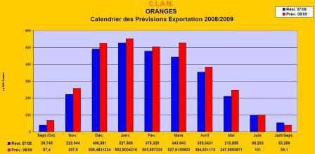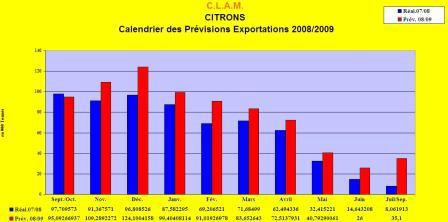 Per le arance, invece, il picco delle esportazioni sarà in gennaio, con approssimativamente 552.800 ton (erano 527.809 ton nel 2007). Da sottolineare le attese per i volumi di arance che saranno esportati nei mesi di dicembre 2008 (526.483 ton) e marzo 2009 (527.913 ton).