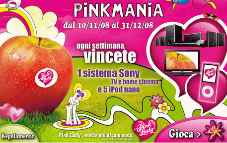 Pink Lady invita a partecipare al concorso Pinkmania. Ogni settimana in Palio: 1 sistema Sony TV e Home Cinema e 5 iPod Nano. Per partecipare, collegarsi al sito:
