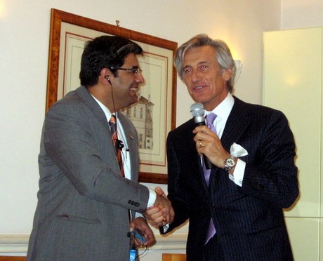 Un'amichevole stretta di mano tra Mr. Sameer Bard (FICCI) e il Cav. Paolo Bruni (Fedagri-Confcooperative)