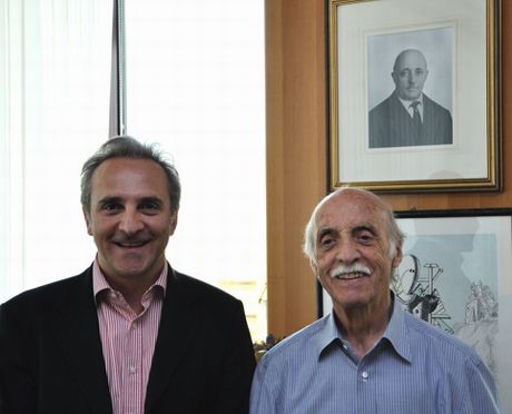 Tre generazioni nella stessa foto. A sinistra, l'attuale direttore commerciale Marco Salvi, a fianco di suo padre Luigi Salvi, presidente di UNACOA. Nel quadro appeso alla parete, il padre di Luigi Salvi. (Foto: FreshPlaza Italia).