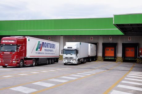Camion in carico e in partenza dallo stabilimento Salvi-UNACOA di Ferrara. (Foto: FreshPlaza Italia).