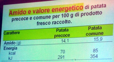 "Abbiamo scoperto - continua Santamaria - che alcune tecniche colturali possono contribuire a ridurre ancor più l'apporto calorico della patata novella. Inoltre, la minore presenza di zuccheri rende le patate primaticce maggiormente idonee alla frittura, in quanto la loro pasta non presenta imbrunimento".