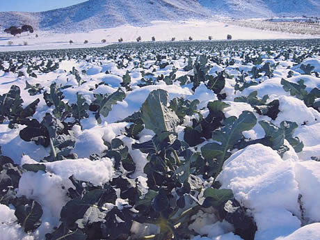 L'Olanda si colora di bianco, ma anche in Spagna all'inizio della scorsa settimana sono apparsi i primi fiocchi di neve. Nella regione di Murcia, nelle vicinanze di Lorca, i campi di verdura sono stati ricoperti da uno strato di neve. L'azienda olandese Verdi Import continua a ricevere molti ortaggi dalla Spagna, principalmente melanzane, broccoli, zucchine, insalata iceberg, cetrioli e peperoni, anche se la neve è sinonimo di problemi per le coltivazioni di ortaggi. Henk Rozema di Verdi Import riferisce per esempio che una verdura come i broccoli potrebbe risentire negativamente delle basse temperature.