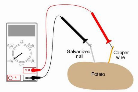 Haim Rabinowitch e l'assistente Alex Goldberg della Hebrew University, in collaborazione con Boris Rubinsky dell'Università della California (Berkeley), ha scoperto un nuovo modo di costruire una batteria efficiente usando elettrodi di zinco e rame, insieme a una fetta di una comune patata.