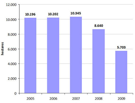 Areale destinato a meloni in Costa Rica: 2005-2009 (FAOSTAT)