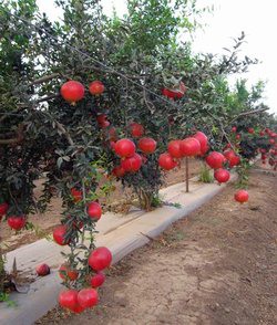 Il terreno sul quale dovrà essere realizzato l'impianto di melograno deve essere preparato con sostanza organica e "baulatura" delle file (nella foto a destra, il melograno in Israele: ecco un impianto finito e in produzione).