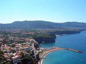 Area di produzioneIl Limone di Sorrento IGP viene coltivato in tutti i comuni della Penisola Sorrentina: Massa Lubrense, Meta, Piano di Sorrento, Sant’Agnello, Sorrento, Vico Equense, oltre che nell’isola di Capri, con i due comuni Capri ed Anacapri (nella foto a sinistra: in primo piano Meta con la sua spiaggia, in fondo il resto della Penisola Sorrentina).
