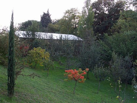 Una bella oliveta, con pregiate varietà da olio e da tavola, sovrasta i filari ordinati delle piante da frutto coltivate in vaso assieme a viti, fichi e olivi, in mezzo ai quali fanno bella mostra di sé rari animali da cortile.