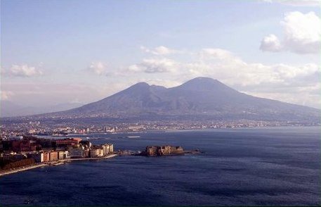 Una splendida foto del Vesuvio, della fascia pedemontana e di Napoli con il suo golfo.