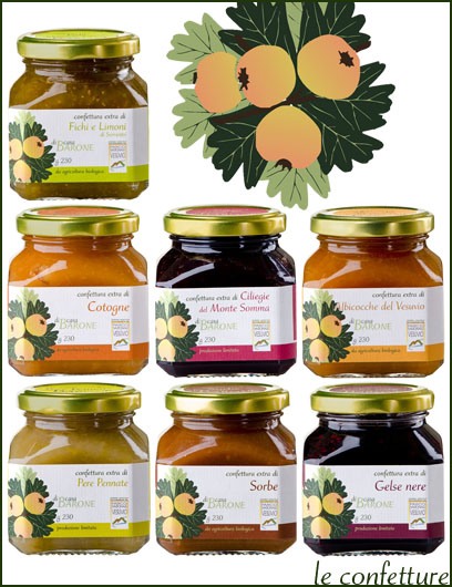 Per valorizzare le tante piccole produzioni aziendali, si è, quindi, percorsa la strada di trasformare parte del prodotto in confetture e marmellate, in liquori aromatici e acquaviti di frutta, mentre la produzione di vini, anch’essa in quantità limitate, è esclusivamente rivolta alla vinificazione di uve dei vitigni autoctoni vesuviani: la Catalanesca, il Caprettone e il Piedirosso.