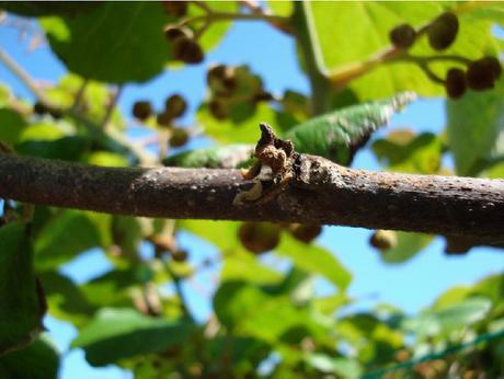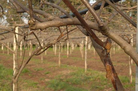 Giovane actinidieto di Hayward di 5-6 anni colpito da PSA: si notano deperimento dei getti, limitata rottura delle gemme e abbondanti essudati. (Fonte: KVH, per gentile concessione a FreshPlaza).