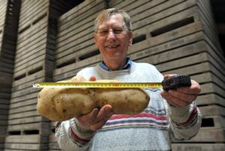 L'olandese Willy Dobbelaer commercializza patate da 50 anni. Una Bintje così lunga però non gli era mai capitata fra le mani. Il tubero è lungo 29,5 cm e pesa 1.350 g; mentre solitamente una Bintje standard è lunga 15-20 cm. Fonte: pzc.nl
