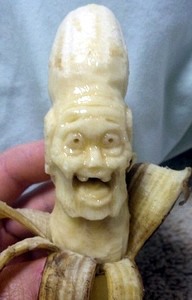 Il ventitreenne Keisuke Yamada ha svelato alcune delle sue creazioni più riuscite agli spettatori di tutto il mondo. Quella più stravagante è forse la rappresentazione del dio del mare, Poseidone: utilizzando sei banane, il dio che brandisce lo scettro è circondato da teste di cavallo intagliate in maniera straordinaria. L'artista ha lasciato nella scultura anche le bucce di banana, che rendono il tutto di massimo impatto.