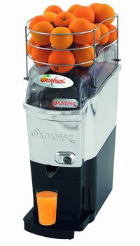 La piccola Expressa (disponibile anche in versione cromata - foto qui accanto) rappresenta il miglior compromesso qualità/prezzo, l'ideale nei locali che dispongono di spazi ridotti. Prepara 3-4 bicchieri di succo d'arancia al minuto e si pulisce facilmente, grazie al gruppo di spremitura estraibile e lavabile anche in lavastoviglie.
