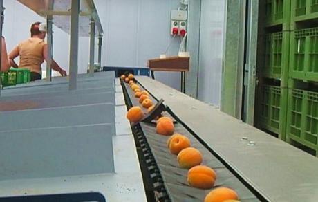 La UNI_ONE JOLLY LF© è una calibratice elettronica a tazze per piccole e medie produzioni ad alta versatilità, tanto che l’azienda Fabbri la utilizza nei mesi estivi anche per la lavorazione delle albicocche (nella foto sotto un momento della lavorazione estiva).